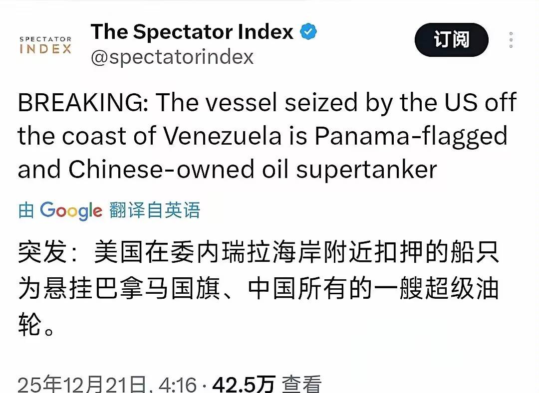 12月20日凌晨,美方在国防部支持下,突然扣押了悬挂巴拿马国旗的“世纪号”超级油轮,外媒直接实锤:这艘油轮上的石油资产,全归中国贸易商所有!