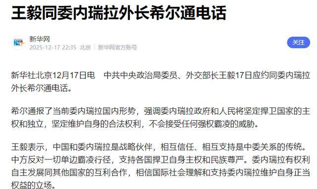 2025-12-21 16:01:35“王毅外长的回应,直接给委内瑞拉吃了定心丸”