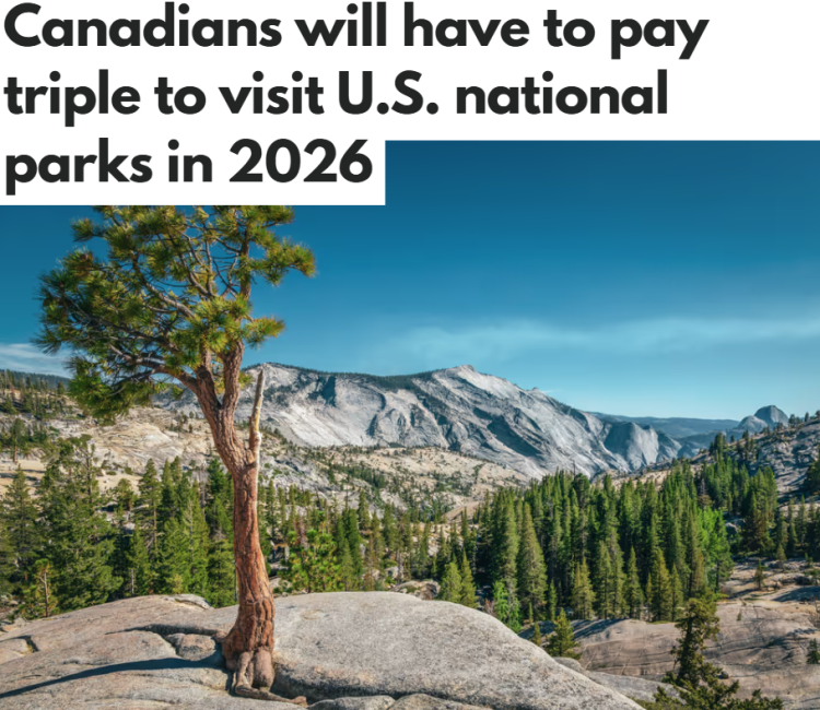 计划前往美国游览国家公园的加拿大人,将不得不支付三倍的费用。