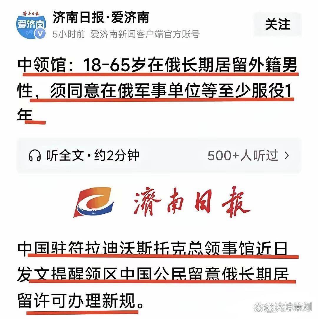 一直以来力挺俄罗斯的国人机会来了!俄罗斯兵源大缺,18-65岁的常住俄罗斯外籍人员也必须要服一年兵役!只要你愿意移民俄罗斯,愿意当兵,就可以上乌克兰前线作战了,你也可以成为战斗民族一员了,跟着你们的普大帝战斗去吧! 返回搜狐,查看更多