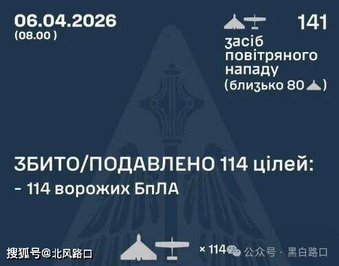 4月5日,俄罗斯发射141架无人机袭击乌克兰多地,乌军击落114架无人机,17个地点记录到撞击,13个地点有残骸落下。