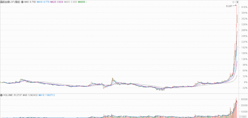截至1月29日,最近一个多月里,白银LOF涨到了最高5.247元,短期内涨幅超过240%(上图)。