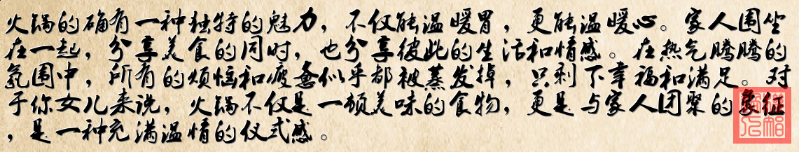 《归家暖锅》 窗外梧桐叶飘落 门铃响起那一刻 围裙沾着旧时光 你推门带着风霜 铜锅咕嘟冒热气 清汤麻辣两相宜 豆腐皮在浪里翻 辣椒红得正鲜艳 你往我碗里夹肉片 说外面世界太凛冽 芝麻酱慢慢调开 所有疲惫都溶解 小狗在院子里打转 叼着玩具等你发现 秋千轻轻晃啊晃 像你童年的模样 窗台兰花静静开 阳光斜照在碗筷 这杯双色的饮料 映着你甜甜笑 不必说漂泊多漫长 火锅汤永远滚烫 当蒸汽模糊了玻璃窗 这里就是避风港 院子落叶沙沙响 陪我们把故事讲 任岁月改变多少事 这味道始终如一