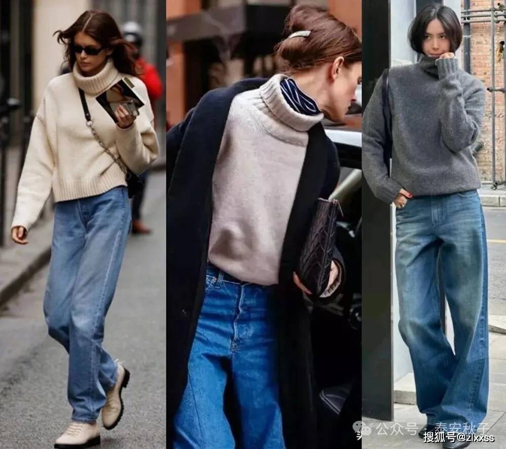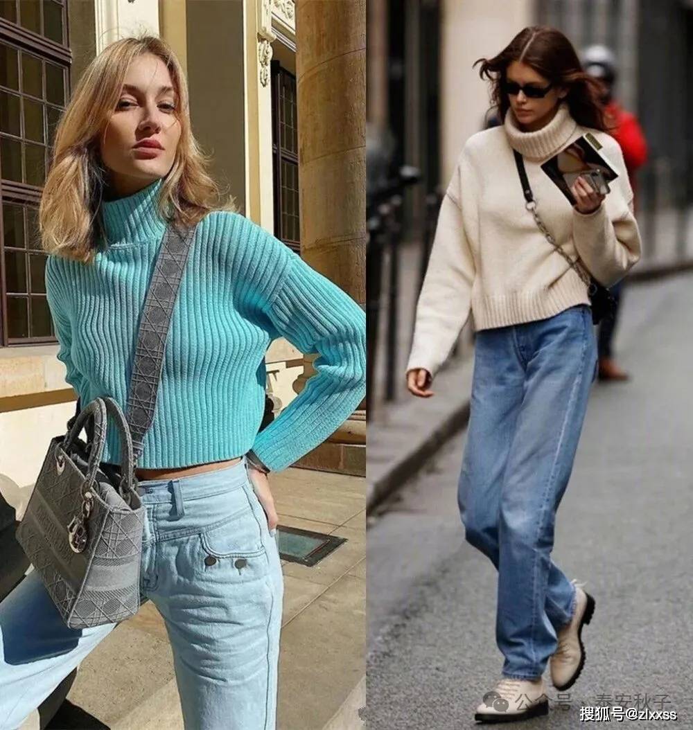 入冬之后,牛仔裤和高领衫的结合堪称最安全、最经典的穿搭,平日喜欢逛街的女生建议选它。