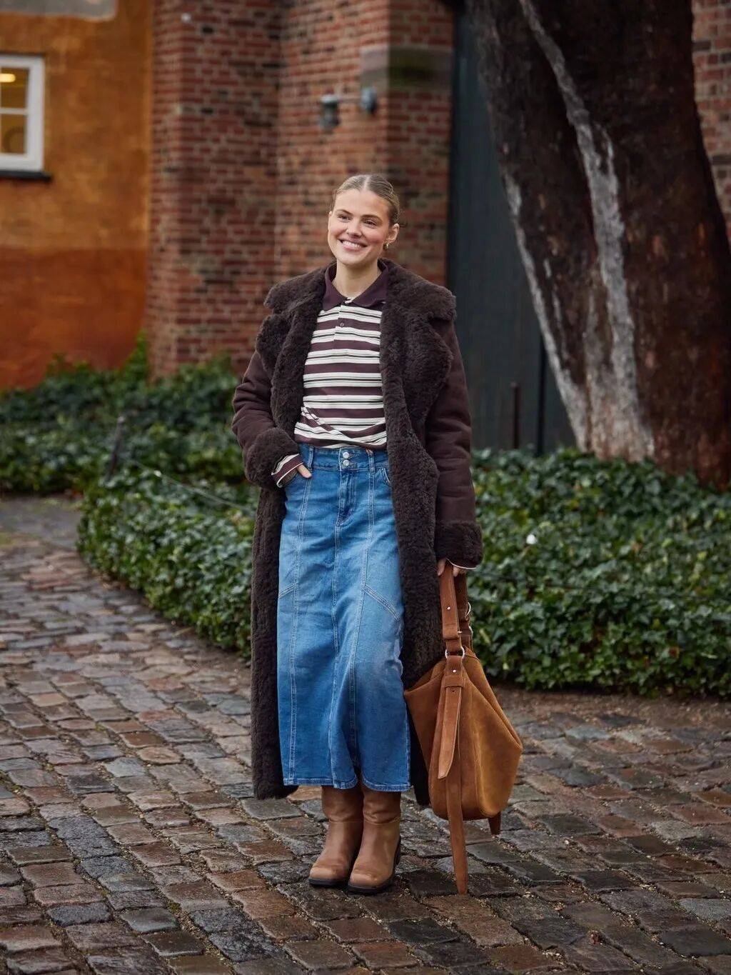 若想尝试更轻松年轻的穿法,一件短款的棕色皮草外套也能在瞬间点亮造型,搭配裤装或短裙,显得俏皮而富有活力。