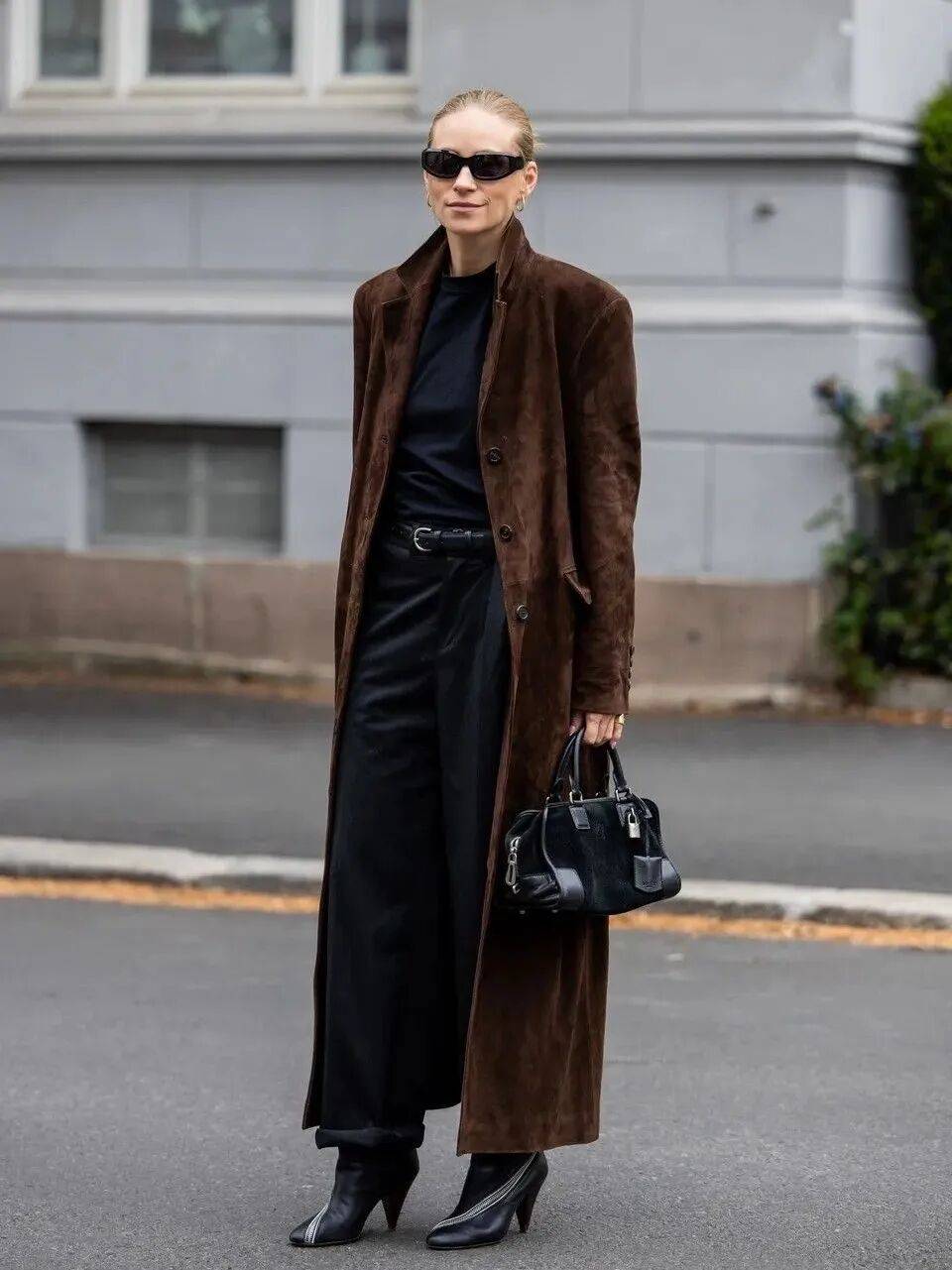 一件剪裁得体的棕色呢质大衣,是冬日里最值得信赖的单品。