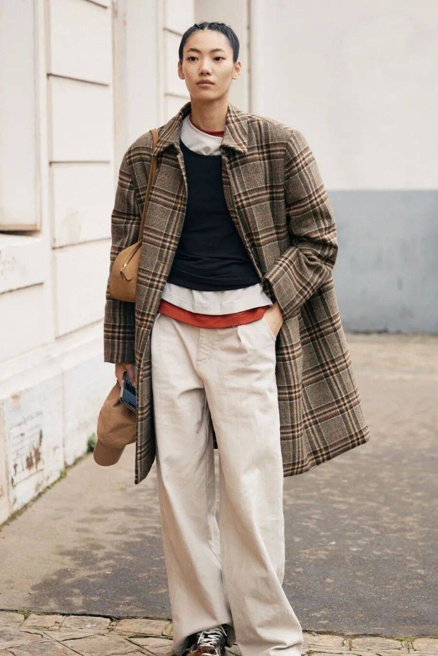 当格纹重返时尚中心,以棕色为基调的格纹大衣,往往是最显功底、也最容易驾驭的选择。