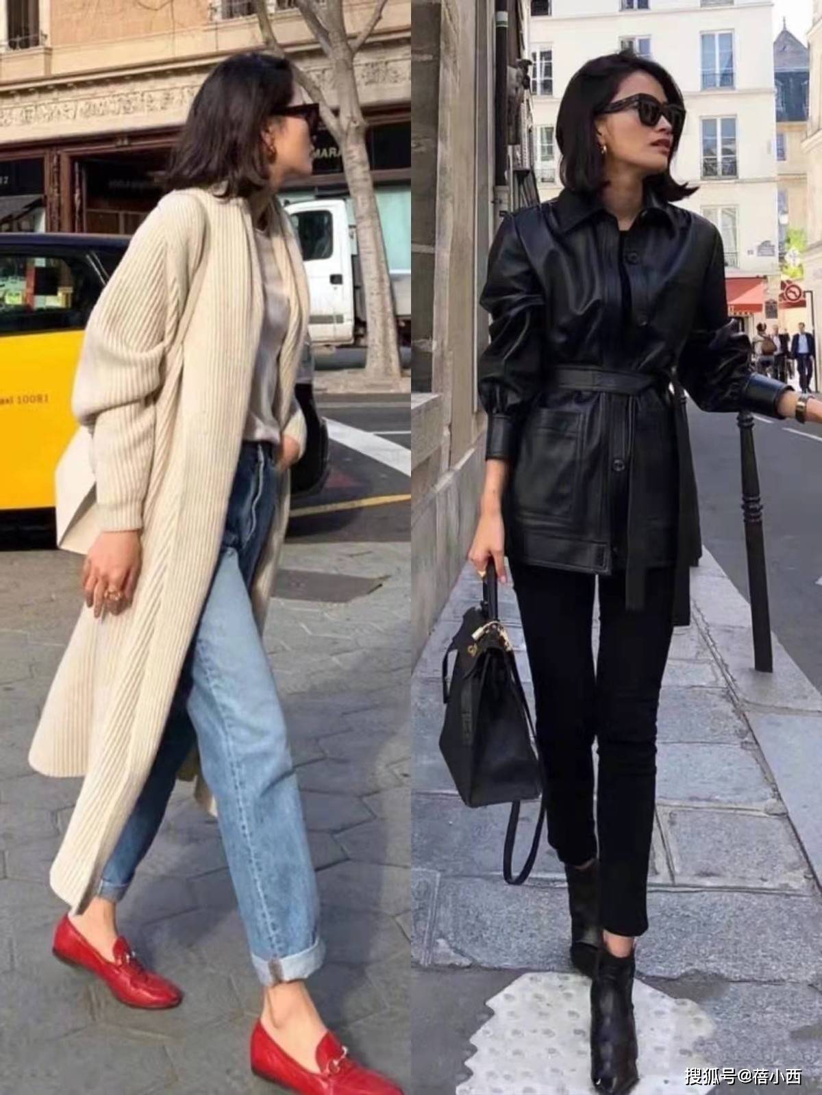 如果觉得中性色过于沉闷,也可以适当加入少量亮色作为点缀,但要遵循“主次分明”的原则。比如一双红色乐福鞋搭配蓝色牛仔裤,就能打破沉闷,又不会破坏极简的整体感。需要注意的是,极简穿搭的色彩数量最好控制在3种以内,且饱和度不宜过高,低饱和的莫兰迪色、大地色都是不错的选择,能让造型更显温柔雅致。