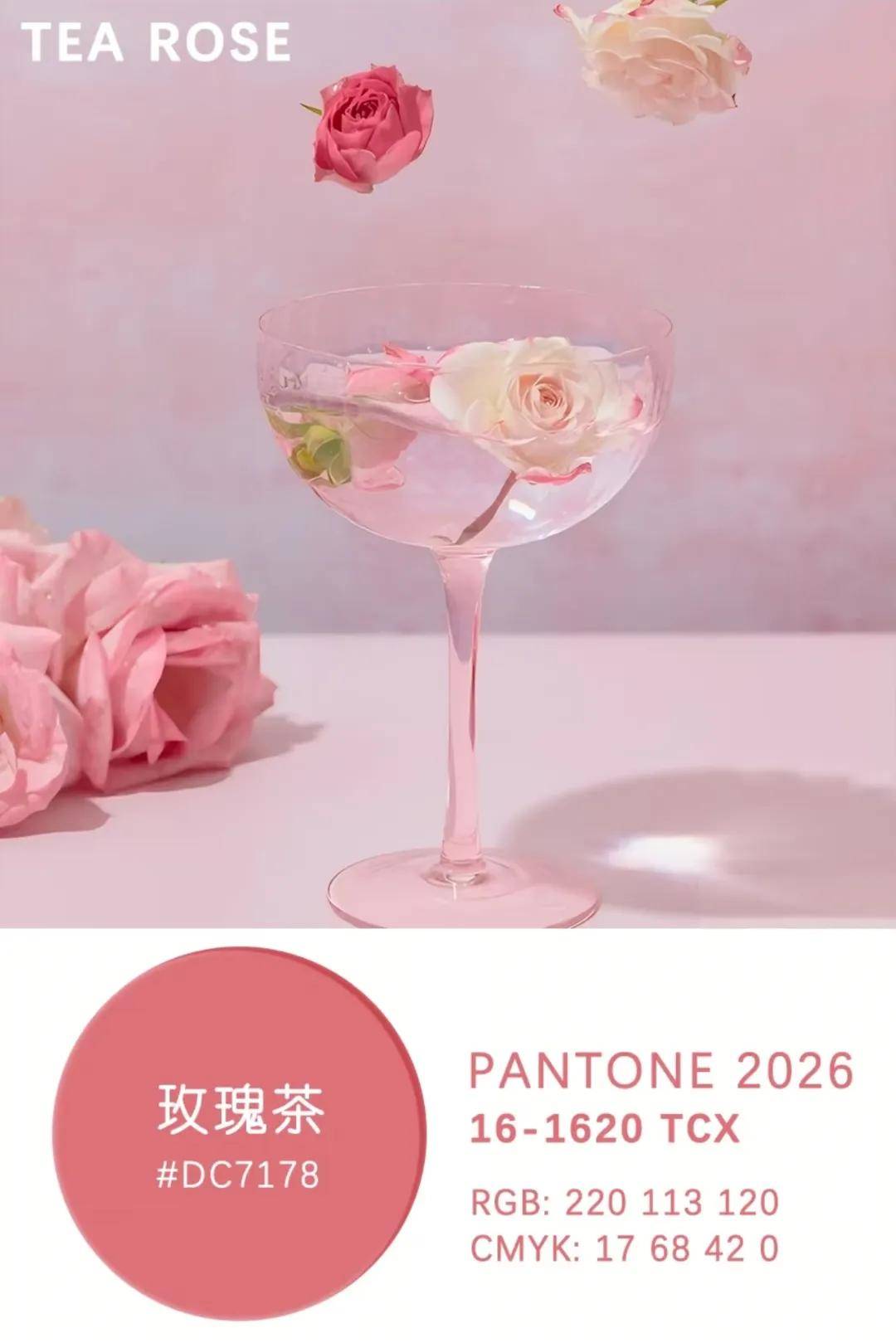 这种色调呈现出一种既包含红色又带有粉色的视觉效果,就好像粉红色的花瓣在清澈的茶水中慢慢地舒展开来一样,温柔淡雅,带着一丝微醺的感觉,质感很强。