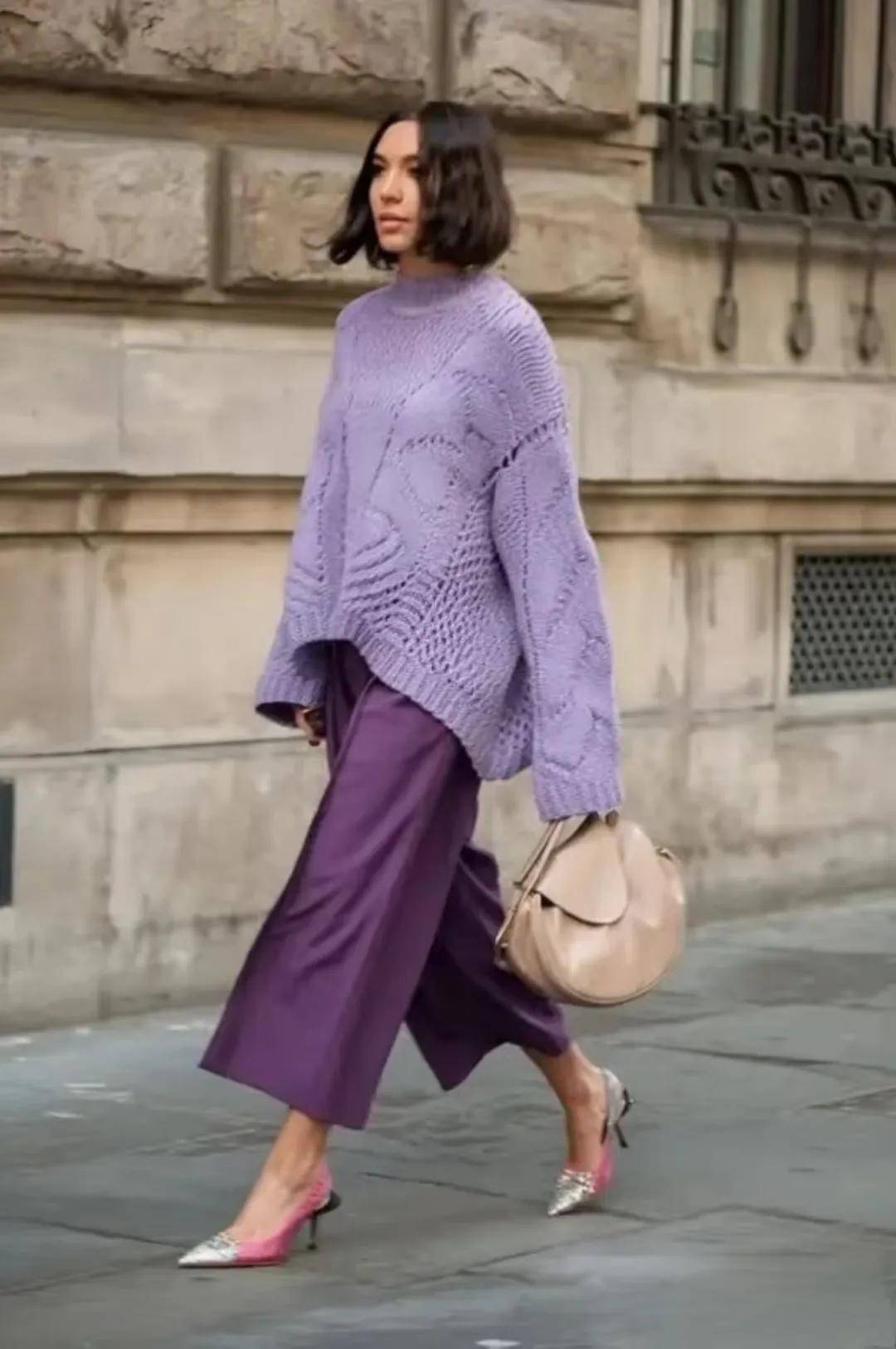 如果想要打造出最具高级感的搭配效果,选择搭配同色系的深紫色是非常不错的选择。在色调上有着天然的和谐性,深紫色的浓郁能够与淡紫色的轻盈相互映衬,产生一种渐变的美感。
