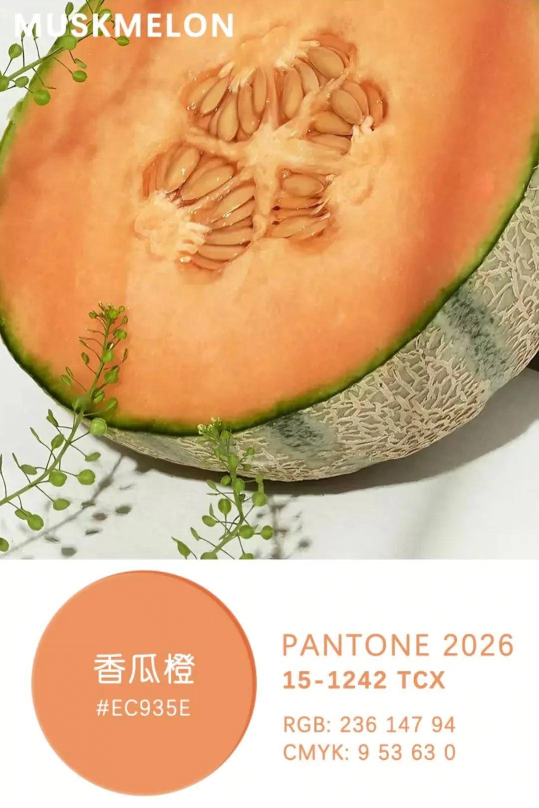 香瓜橙呈现出一种淡淡的、柔和的橙色调,源自熟透瓜瓤的温润色调,散发着甜蜜而安稳的治愈气息。
