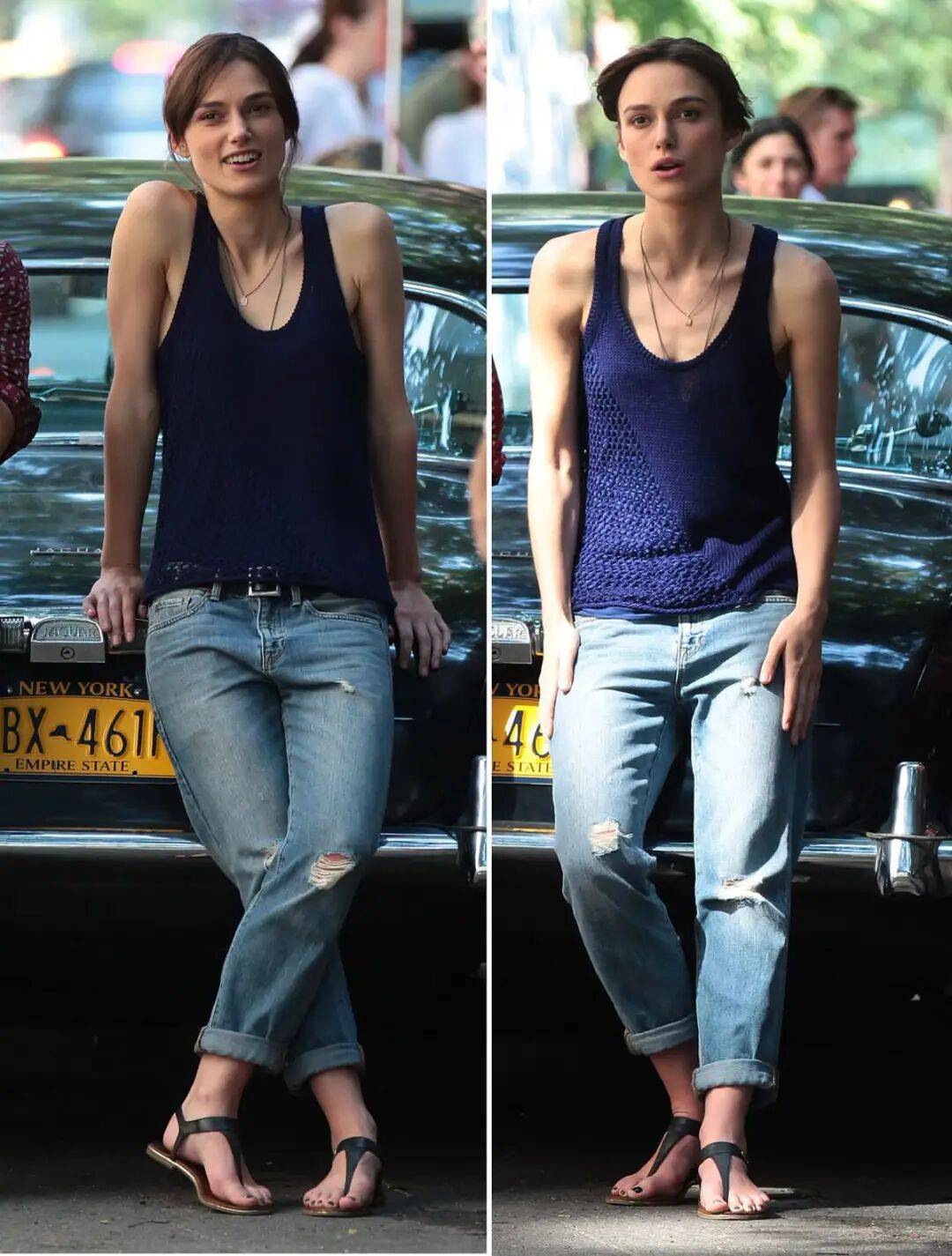 一条破洞牛仔裤,搭配人字拖和背心,夏日凉风的清爽。