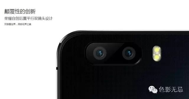 与“HTC派”不同,2014年的华为荣耀6 Plus另辟蹊径,号称全球首款平行仿生双摄像头手机,与HTC竖向排列不同,荣耀6 Plus两个摄像头是横向排列,两个摄像头均参与成像。这在算法和优化上要比HTC的方案更为复杂。另外,利用双摄像头和对焦物体之间三角测距原理,能够计算出焦点与手机之间的距离,完成快速对焦;而由于记录有景深信息,拍照后同样可以模拟不同光圈下(f/0.95-f/16)的景深效果,甚至全清晰的扩展景深(EDoF)。